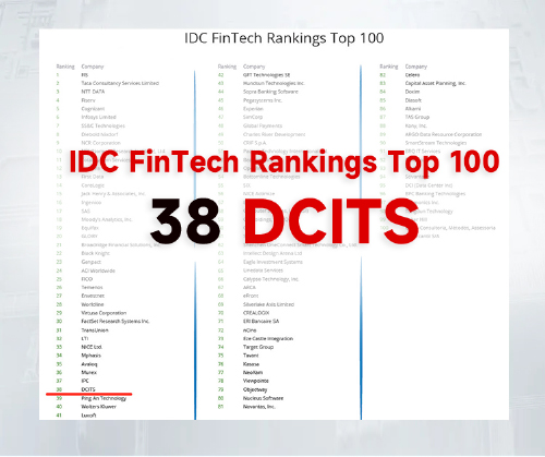 • DCITS ranks first in the open banking solutions, core banking systems, and channel management segments(CCID Consulting).