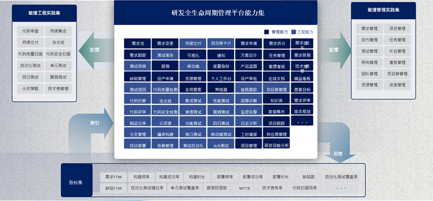 平台建设并拉通立项、需求、开发、测试、部署等研发全生命周期闭环流程,实现信息的精准传递和管理