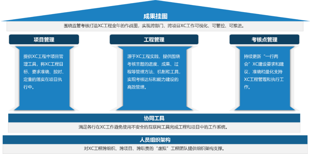 作为“结果导向”的专业信创工程管理工具,“金融信创全息管理系统”将金融信创的三大管理要素(项目管理、工程管理、考核点管理)与人员组织架构结合,通过预定义的协同工作流程,围绕信创年度建设目标打造全年的信创“作战图”,实现跨部门、跨项目工作可视化、强管控、易推进。
