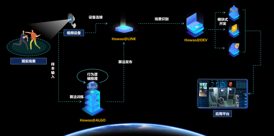 神州信息自主研发的Howso@ALGO、Howso@LINK和Howso@DEV机器视觉相关产品,可将银行监控场景中视频和图像的非结构化数据进行结构化处理,在监控告警应用平台进行数字化分析和呈现。其中,Howso@ALGO是一款AI机器视觉深度学习开放平台,它集深度学习核心框架、样本标注工具、算法训练组件及发布平台为一体,实现一站式样本标注、算法训练、服务发布。Howso@ALGO发布的机器视觉算法发布后在Howso@LINK运行。Howso@LINK让“视频设备拥有智能、不止于看见”,解决视频设备快速接入和智能识别问题,输出告警信息。Howso@DEV是一款低代码开发平台,将识别到的告警信息,快速搭建告警应用平台。