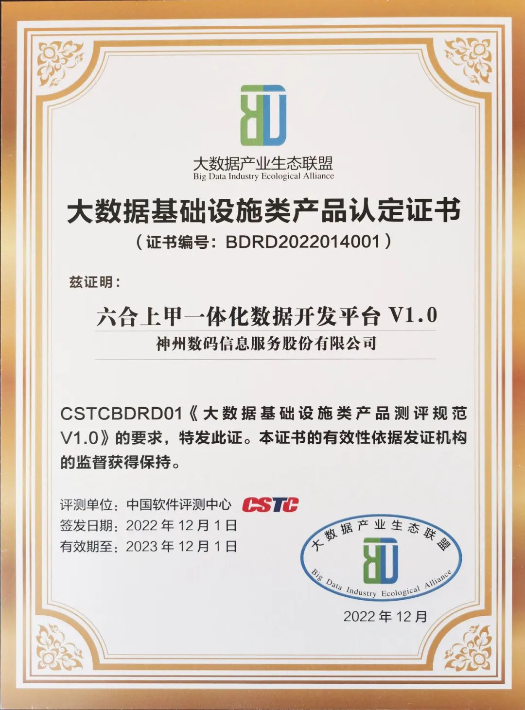 12月16日,由大数据产业生态联盟组织,联盟数据治理与流通专委会单位中国软件评测中心专业执行的“第十三期优秀大数据产品、解决方案和应用案例”测评结果在2022(第十二届)软件大会上公布。神州信息六合上甲一体化数据开发平台获评优秀大数据产品。
