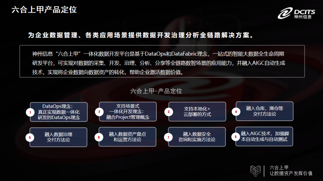 2022年,神州信息基于“云原生”研发了一体化数据开发工具,确定其名为“六合上甲”。